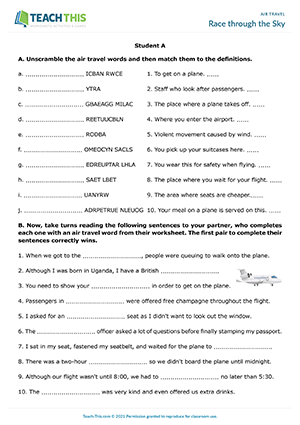 ESL Air Travel Activity - Vocabulary Exercises: Unscrambling, Matching - Speaking Activity: Sentence Completion, Gap-fill - Pair Work